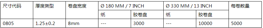 (1)尺寸:0805 (2012)。