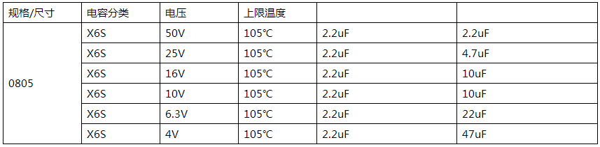 0805電容常用參數(shù)表