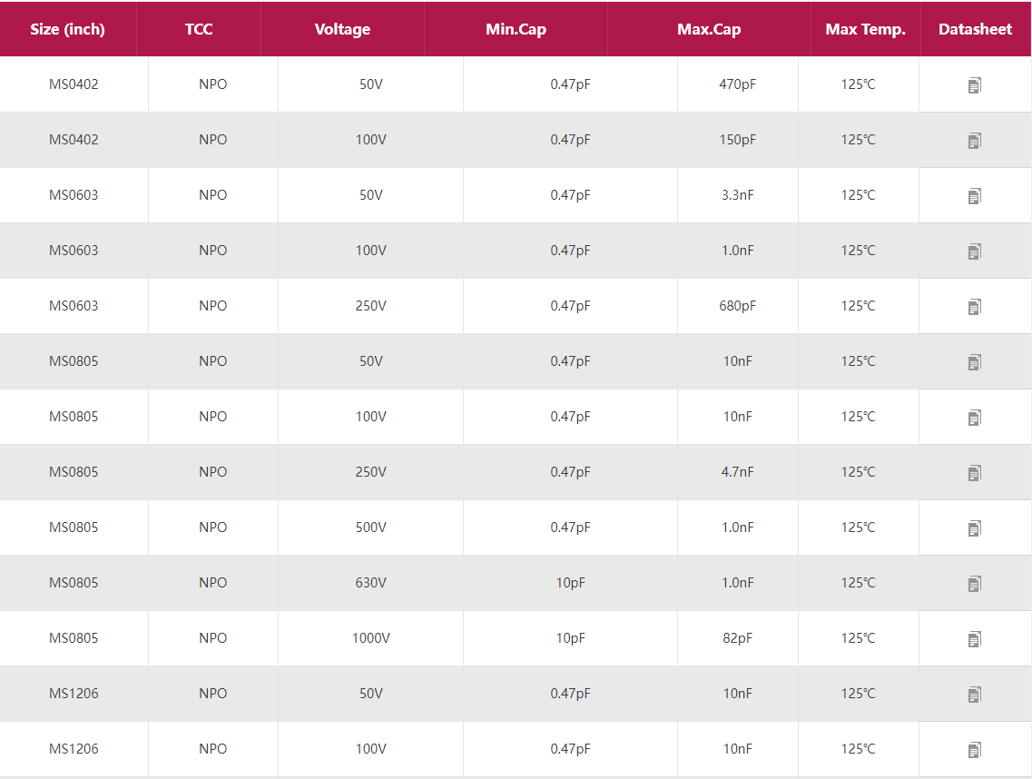 信維軟端子電容 產品型號:0201 0402 0603 0805 1206 1210